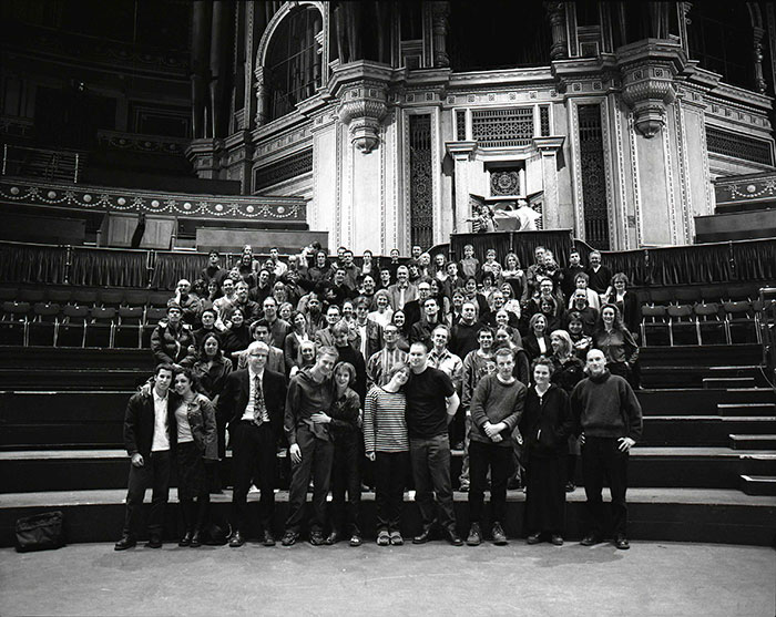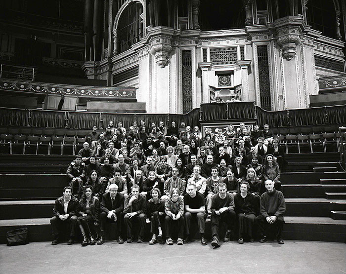 Participants in both last year’s and this year’s photograph may begin to feel a slight sense of belonging, at least to the event, if not to the group. As an annual event, the photograph becomes a measuring device: we compare our appearances and our lives to this time last year. Photographs taken with our consent are always staged. Group photographs are also usually scripted (‘Smile!’ or ‘Just look natural!’). In this case we play out the drama on a real stage.