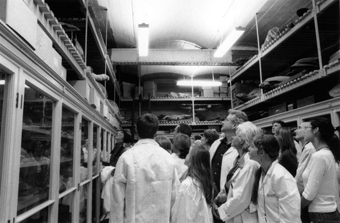 Here we are with all the other species, behind the scenes, in two very different rooms, at the Natural History Museum. The Tank Room, in the Darwin Centre, Phase I, is a modern facility, with large glass, specimen jars - many of from Victorian times – and rows of stainless steel tanks, containing animals from jellyfish to crocodiles, swordfish to orangutans. By contrast, Zoology Store 1, in the basement of the Waterhouse Building, is a relic of earlier times. It reflects the kind of storage once commonplace throughout the building and is one of the last surviving examples of a Victorian Store-house existing in Zoology.